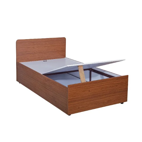 Single Box Storage Bed with PLPB Board & Powder-Coated Frame – Wooden Finish, Lift-Up Storage Bed for Hostel, PG & Home