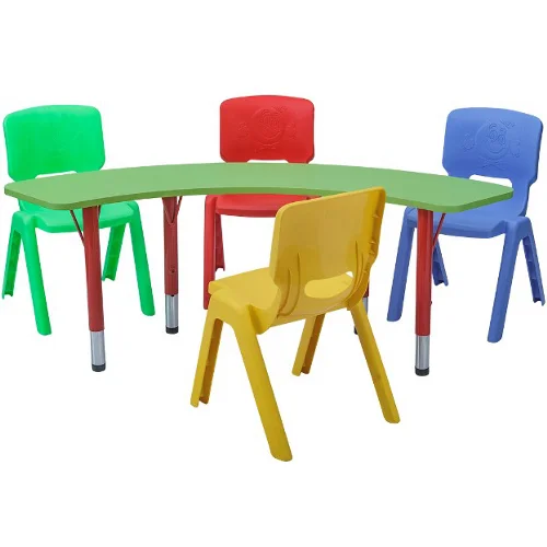 Kids Curved Classroom Table with 4 Colorful Chairs – Preschool & Play School Furniture India