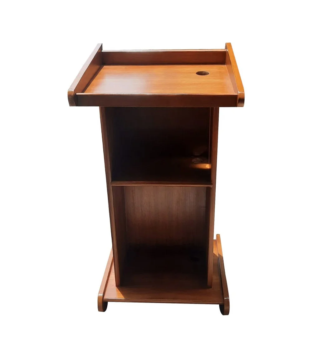 Teak Plywood Wooden Podium Stand with Two Storage Shelves: