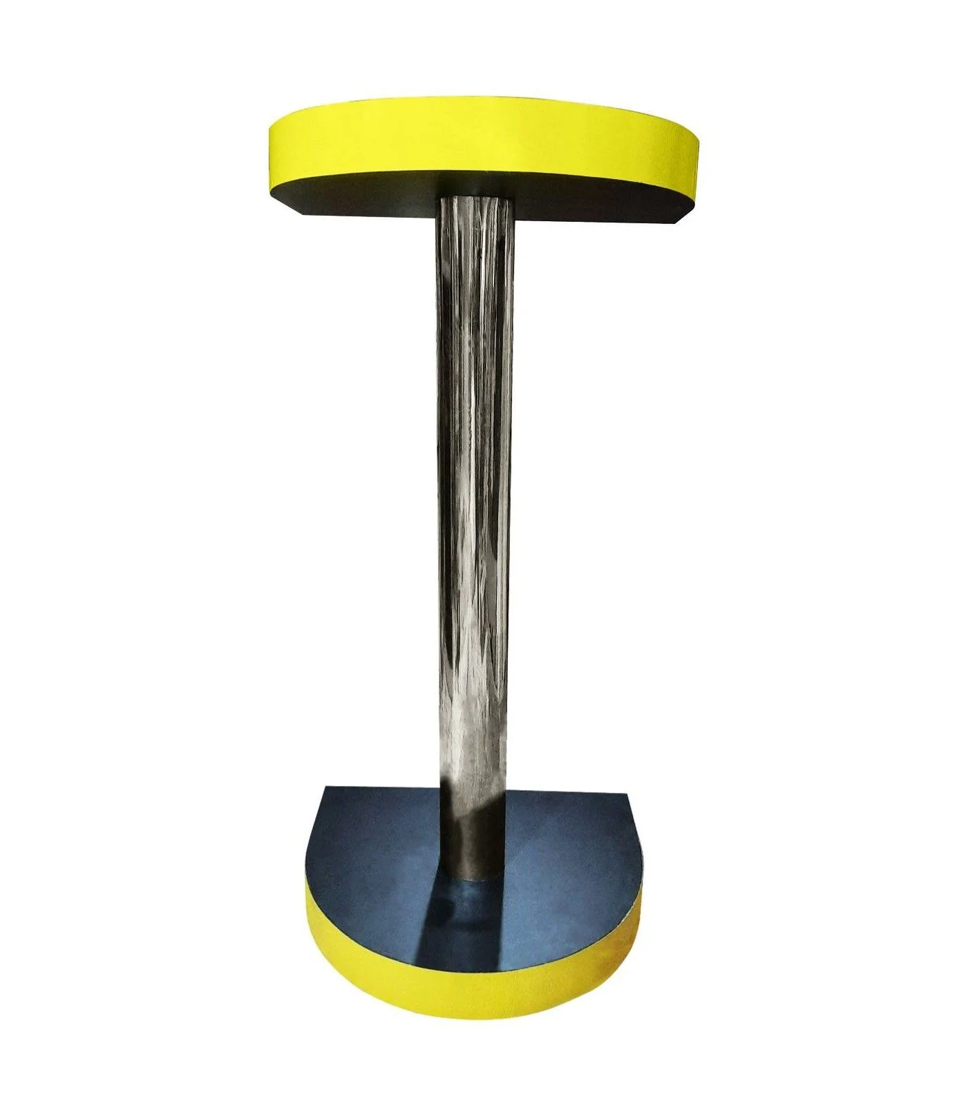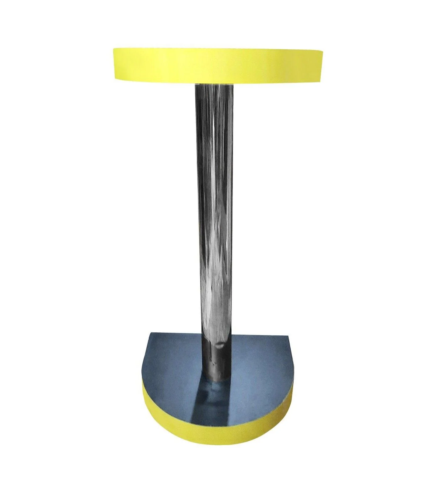 Finished in bold yellow and black laminated sunmica, this podium catches attention instantly. The 4-inch stainless steel pipe support adds a modern industrial touch.